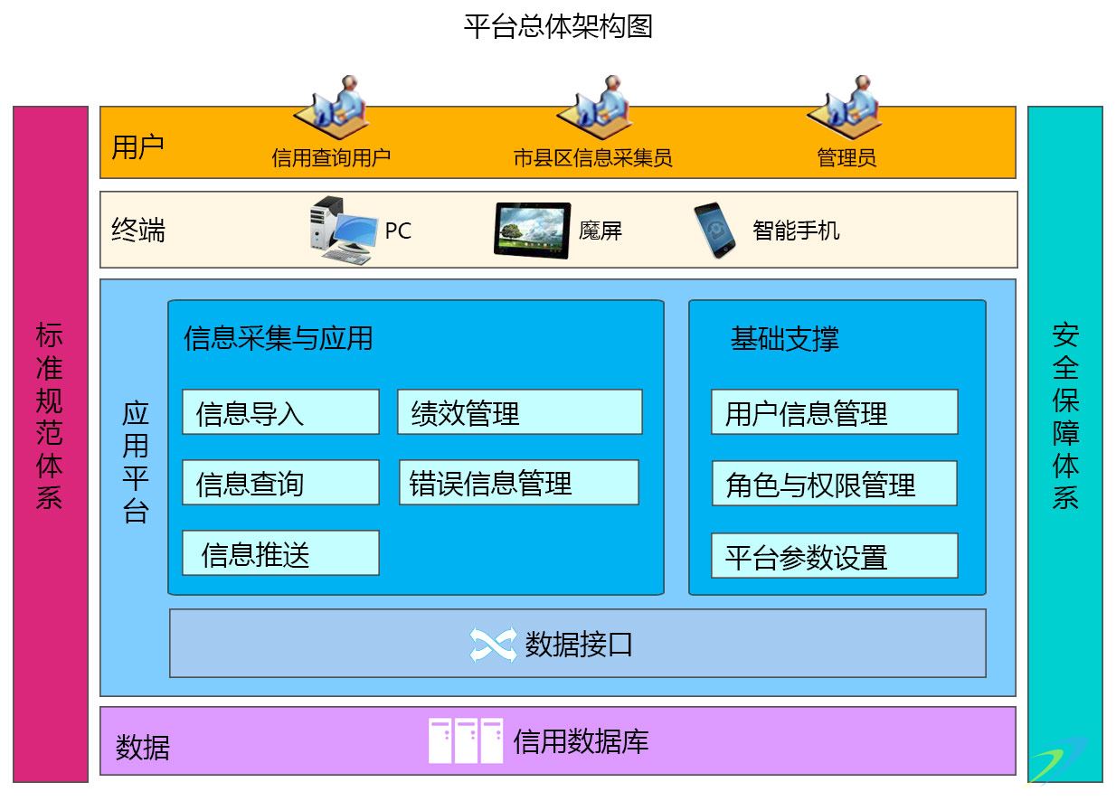 平臺信用信息數(shù)據(jù)存儲在統(tǒng)一的數(shù)據(jù)庫中,并建立在標準化規(guī)范體系、安全保障體系確保平臺平穩(wěn)運行。