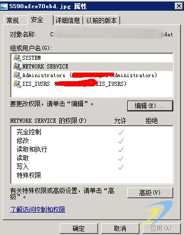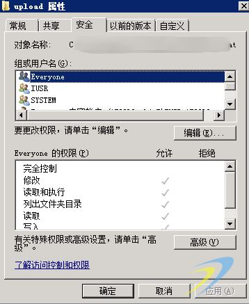 于是查看上傳目錄,目錄的權限已經(jīng)包含"Everyone",目錄應該也沒有問題(之前上傳的圖片都可以訪問)