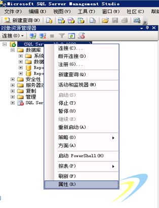 (1)打開數(shù)據(jù)庫,用本地帳戶登錄,右擊第一個選項,選擇屬性: