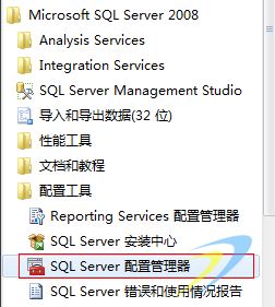 ?(1)依次選擇:開始-〉所有程序-〉Microsoft SQL Server 2008-〉配置工具-〉SQL Server配置管理器,如下圖所示: